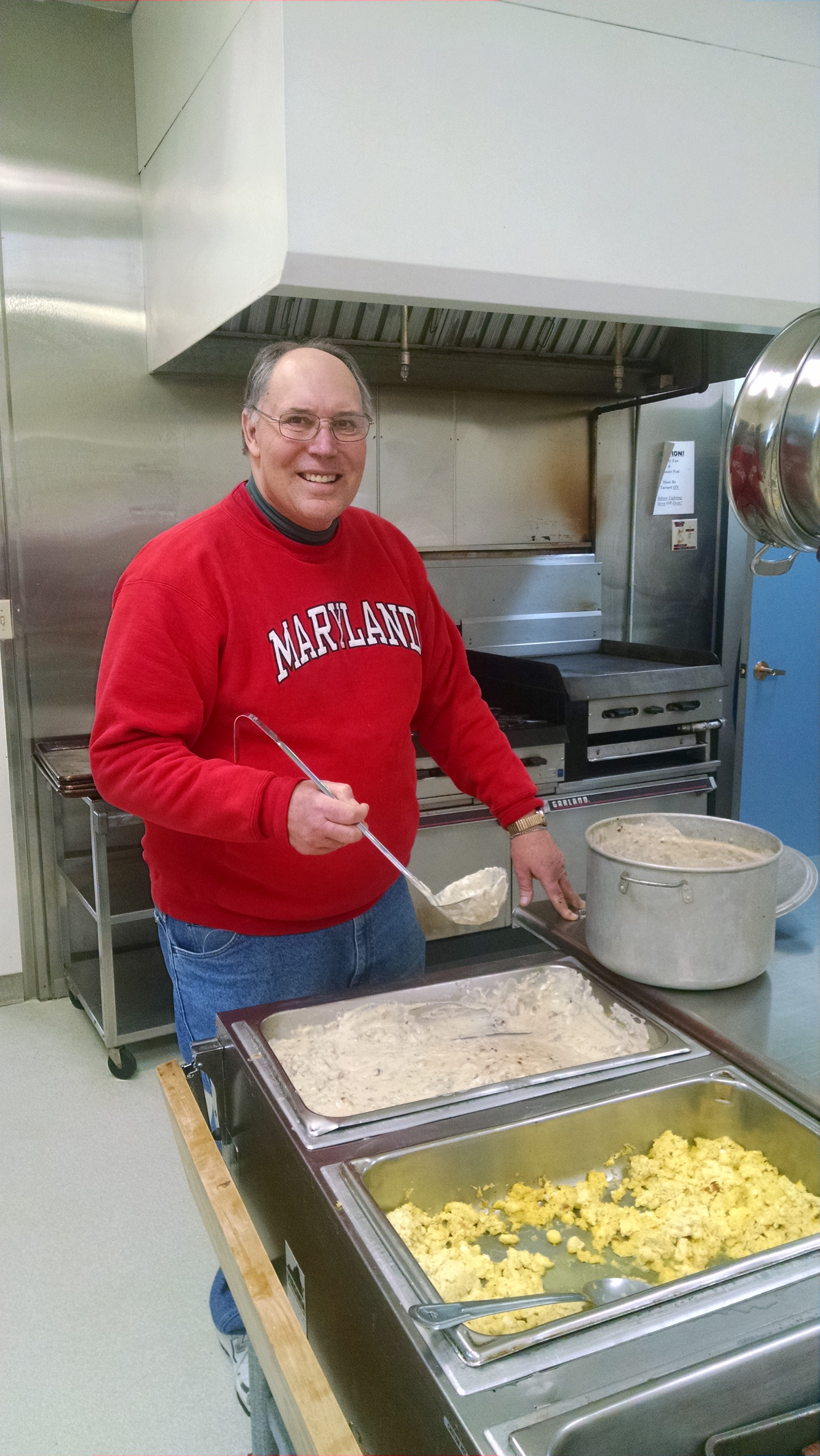 Bob Krause in the kitchen was whistling a tune
