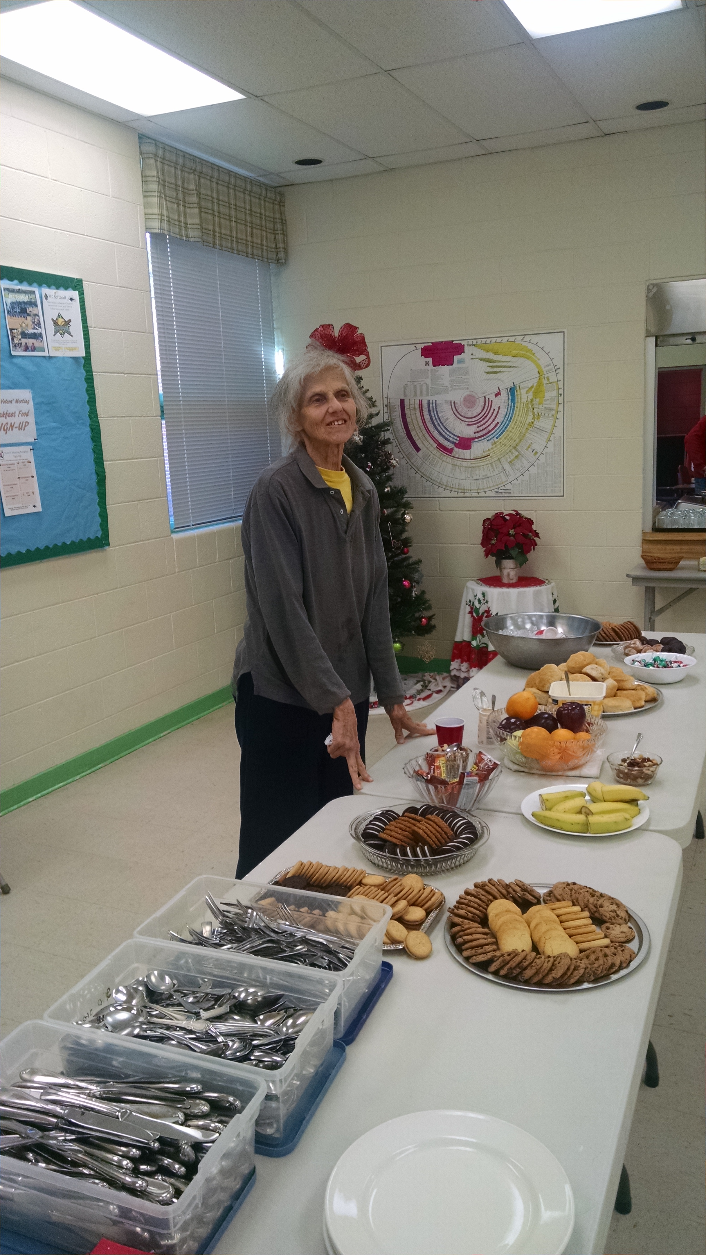 Folks gathered for breakfast, enjoying the feast